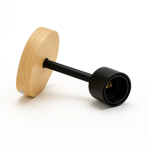 Applique murale bois design moderne métal noir douille arrondie LED E14