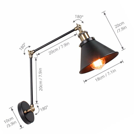Transformez votre intérieur avec notre applique murale industrielle de style loft américain, un luminaire qui allie à la perfection design et fonctionnalité. Conçue pour apporter une ambiance tamisée et chaleureuse à votre chambre à coucher ou salon, cette pièce unique se distingue par ses axes rotatifs ajustables en métal. Dotée d'un abat-jour métallique robuste rappelant le style underground des lofts, elle s'intègre parfaitement dans une décoration industrielle, rétro ou vintage. Que ce soit pour une tête de lit ou un coin lecture, cette applique redéfinit chaque espace avec une touche de sophistication.