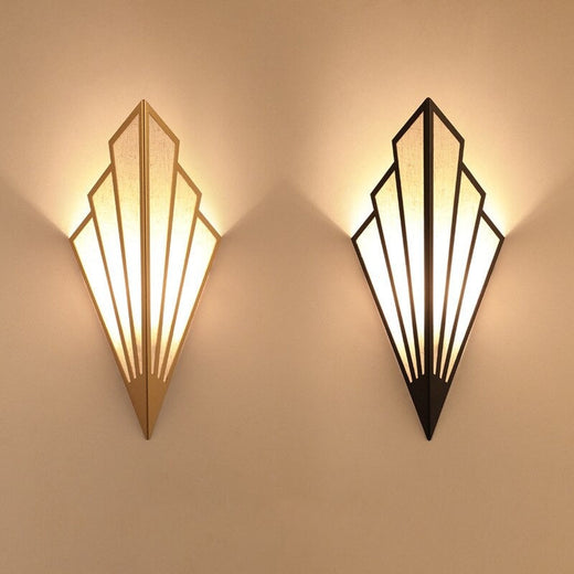 Applique murale cuisine design triangulaire en lin noir doré pour un éclairage chic
