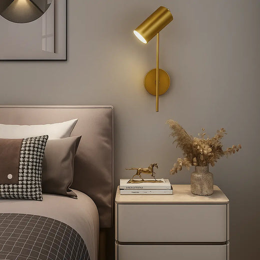 Applique murale dorée orientable en métal LED ajustable pour chevet ou bureau