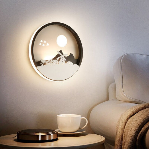 Applique murale ronde en LED avec paysage lumineux intégré